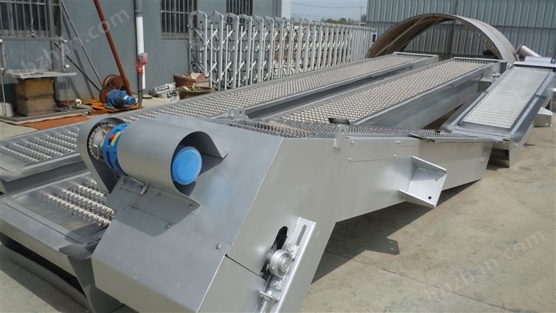 耙污链条采用套筒式平板滚子链,考虑到除污机工作环境较为恶劣,链条长年浸于水体中,污泥、砂粒多,其工作安全系数不小于8,链板采用不锈钢冲压成型,销轴选用高强度的不锈钢制成,且全部经固溶处理。